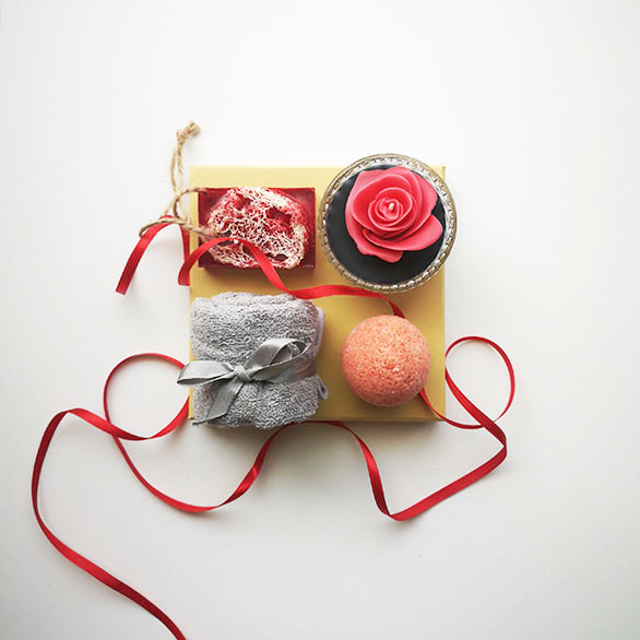 Handcrafted with love! Show them that you care!! A complete combination for home spa. 1 Super Chic Candle 1 Red Loofah Soap 80g 1 Sweet Summer Bath Bomb 100g 1 face towel