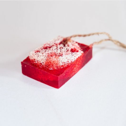 Exfoliating is one of the best things you can do for your skin. It helps rid your skin of dead cells. The most common exfoliant to use is this natural loofah sponge combine with glycerin soap. Scented with pomegranate.
